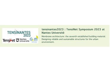 We are pleased to announce you the upcoming 7th International TensiNet Symposium "Membrane architecture: the seventh established building material. Designing reliable and sustainable structures for the urban environment" which will take place at Nantes Université (France) in face-to-face! from Wednesday 7th till Friday 9th June 2023. See link announcement TensiNews 42